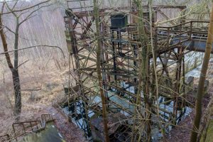 Ab dem Jahre 1871 befand sich im Eberswalder Stadtteil Kupferhammer, am Kupferhammerweg 6/7 eine Hufnagelfabrik mit umfangreichen Fabrikgebäuden (Laska, o.J.). 1871 hatten Julius Moeller und Clemens Schreiber ihr damals erst vier Jahre altes Unternehmen nach Eberswalde verlegt (ebd.). Sie hatten eine Maschine entwickelt, die Hufnägel, die bis dahin in ganz Europa noch per Hand geschmiedet wurden, maschinell fertigte (ebd.). Die Standortentscheidung Eberswalde wurde aufgrund der guten Bahn- und Finowkanalanbindung getroffen, denn das Werk grenzte im Norden direkt an den Finowkanal und im Osten an den Bahndamm (ebd.). Das Werk wurde schnell sehr erfolgreich und beschäftigte bereits im Jahr 1914 1400 Mitarbeiter*innen (ebd.). Die gefertigten Hufnägel wurden über den Finowkanal verschifft. Da dieser aber schon bald seine Leistungsgrenze erreicht hatte, wurde 1906 die Firma A. Borsig mit der Fertigung einer sehr seltenen technischen Einrichtung, einem Waggonaufzug, betraut (ebd.). Der Kanal erzwang durch seinen steilen Abstieg zum Werkgelände diesen außergewöhnlichen Gleisanschluss (o.A., 1968). Bis zu 12 Güterwägen täglich wurden hier gehoben (ebd.). Die mit einem hydraulischen Antrieb betriebene Hebebühne der massiven Stahlkonstruktion konnte nur einen Waggon von bis zu 30 Tonnen heben (Laska, o.J.). 1926 wurde das Werk infolge der Wirtschaftskriese der zwanziger Jahre stillgelegt und das Gelände wurde von da an bis 1993 von der Reichsbahn genutzt (ebd.). Von 1946 bis in die 80er Jahre wurde das Werk auf Veranlassung der sowjetischen Administration wieder in Betrieb genommen (ebd.). Seit der Wende steht das Gelände leer und verfällt (ebd.). Die Gebäude wurden abgerissen und nur noch der Schornstein der Fabrik, sowie der unter Denkmalschutz stehende Waggonaufzug zeugen von der ehemaligen Fabrik (ebd.). Christoph Laska dokumentiert auf einem Blog über den Waggonaufzug (https://waggonaufzug.wordpress.com) den schleichenden Verfall des Aufzuges und berichtet zuletzt unter dem Titel „Status 18.11.2017“: „Die Rostlöcher werden größer, das Dach vom Maschinenhäuschen kleiner…. Aber es gibt recht weit vorne das neue Schild, als Hinweis auf den Aufzug. Auf dem Schild sind auch die Hufnägel abgebildet, die hier mal in unvorstellbaren Mengen produziert worden sind. Kaum vorstellbar, wenn man das Gelände jetzt sieht!“ (Laska, 2017  •)