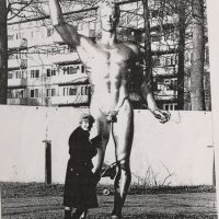 Augenzeugen erinnern sich noch daran, dass die Thorak-Pferde, die Breker-Skulpturen „Berufung“ und „Künder“ sowie die Klimsch-Bronzen „Galathea“ und „Olympia“ zu Beginn der 50iger auf einem Sportplatz des russischen Kasernengeländes im Südend in Eberswalde, dem sogenannten „Russensportplatz“, aufgestellt waren. Arnold Breker, Josef Thorak und Fritz Klimsch waren bei dem Nationalsozialistischen Führungspersonal sehr beliebte Künstler. Die „schreitenden Pferde“, zwei drei Meter hohe und zweieinhalb Tonnen schwere Hohlgüsse aus Bronze hatte der Bildhauer Thorak 1939 als Aufrtragsarbeit eigens für Adolf Hitlers neue Berliner Reichskanzlei angefertigt (Rayß, 2016). Auch die überlebensgroßen Männerstatuen von Breker und die Frauenskluptuen von Klimsch standen im Garten von Hitlers Regierungskanzlei (Dassler, 2015). Die riesigen Skulpturen sollten nach Vahland (2015) Hitlers Macht verkörpern, da jeder Besucher im Vergleich zu ihnen winzig wirkt. Schon 1943 mussten die Statuen allerdings zum Schutz vor Bombenschäden wieder demontiert werden und wurden nach Wriezen (Märkisch-Oderland) auf ein Gelände in dem sich u.a. die Breker-Bildhauerwerkstätten GmbH befanden (Demand, 2016). Unter welchen Umständen die riesigen Statuen auf das Kasernengelände der russischen Armee nach Eberswalde kamen, ließ sich nicht hinreichend aufklären. Sicher ist aber, dass sie um 1950 (ebd.) als Trophäen von sowjetischen Soldaten (Rayß, 2016) in das gut 20 Kilometer entfente Eberswalde auf ein Kasernengelände der Sowjetarmee, auf dem Nazikunst zusammengetragen wurde, gelangten (Demand, 2016).